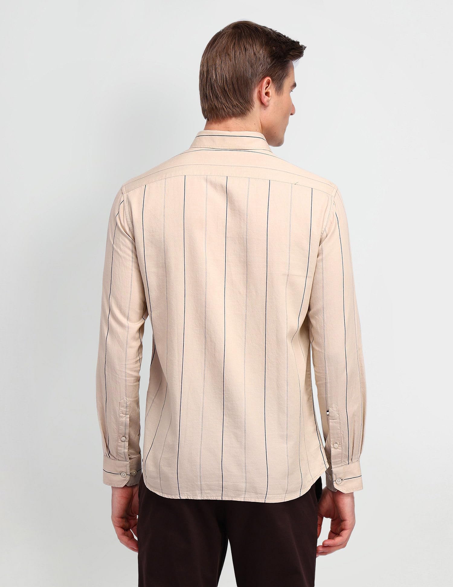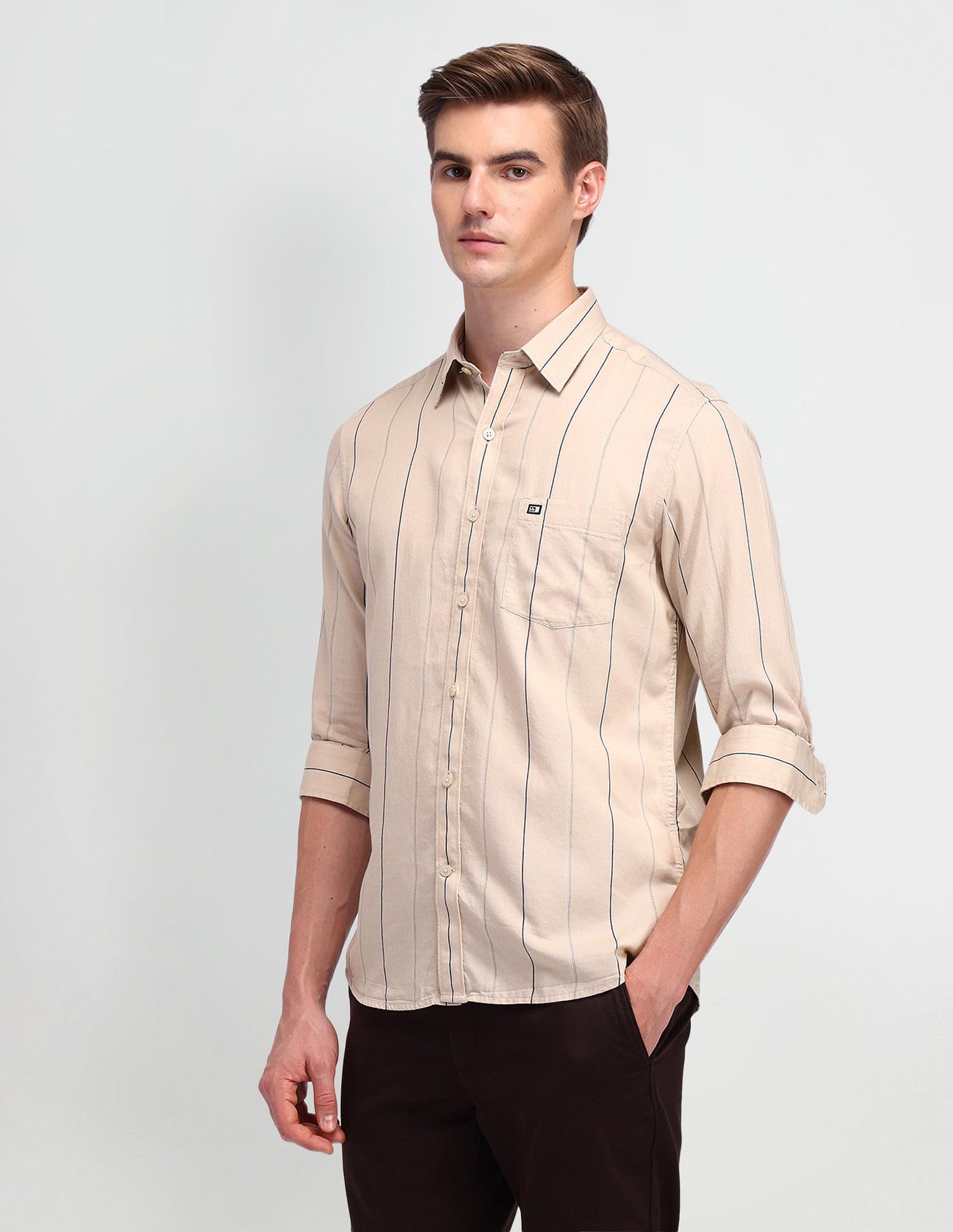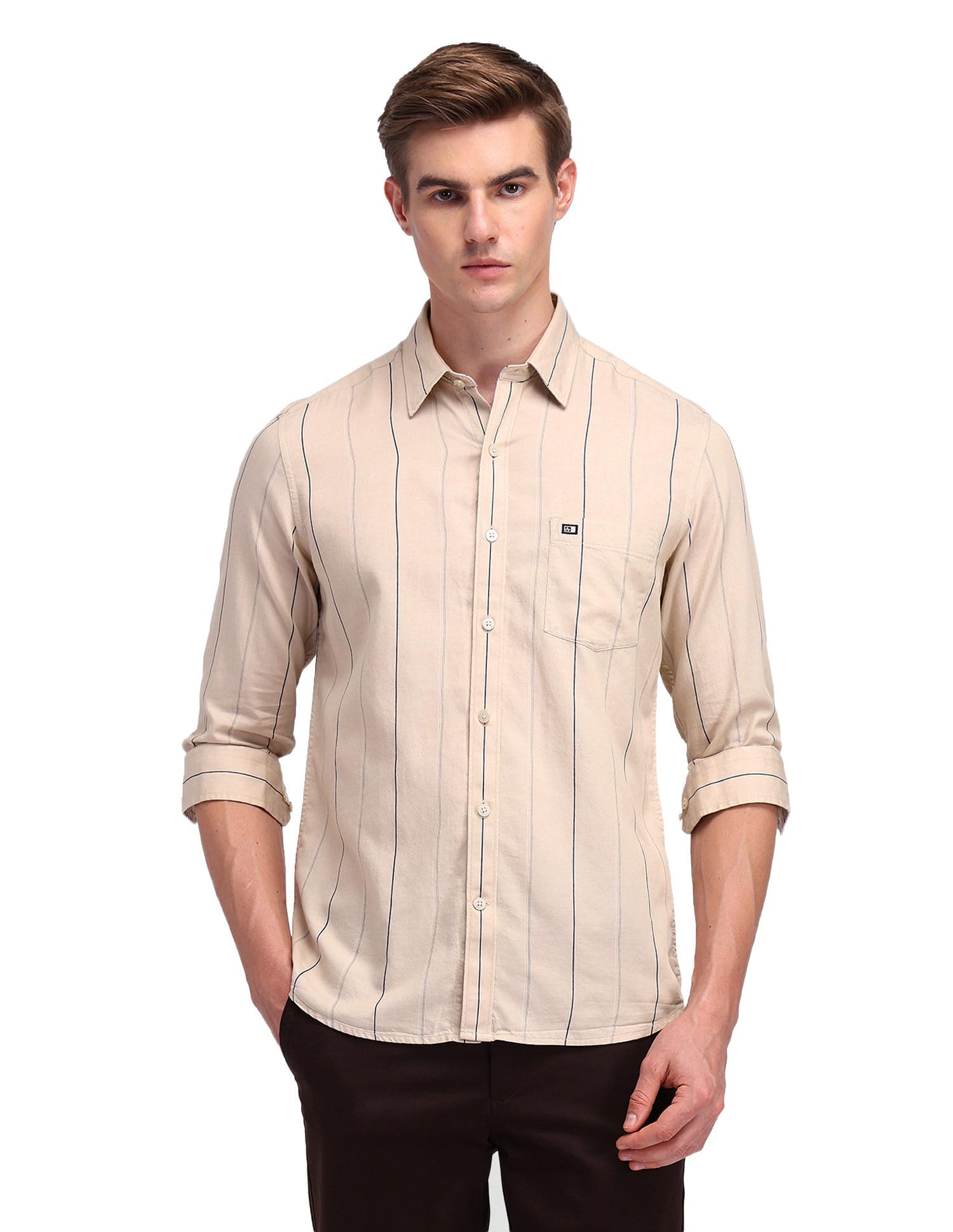 Make a statement with this Arrow Sport casual shirt for men. The vertical stripes pattern and spread neckline create a sleek, modern look. Ideal for casual outings, this shirt combines style and comfort effortlessly.