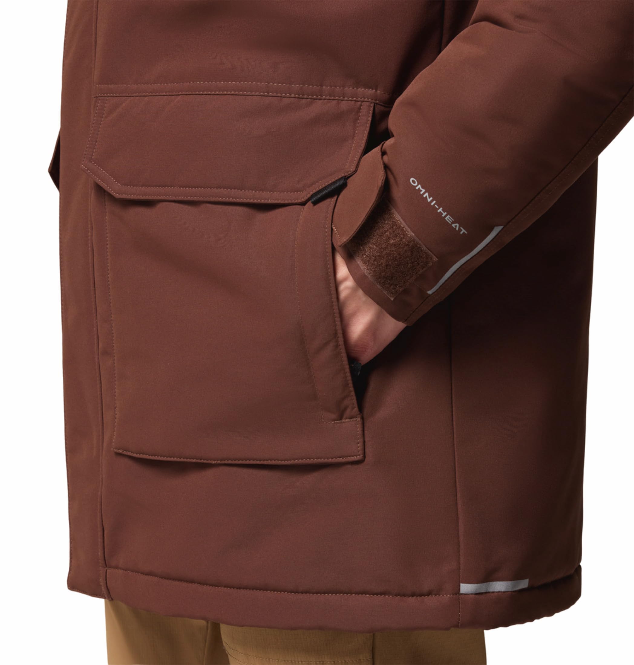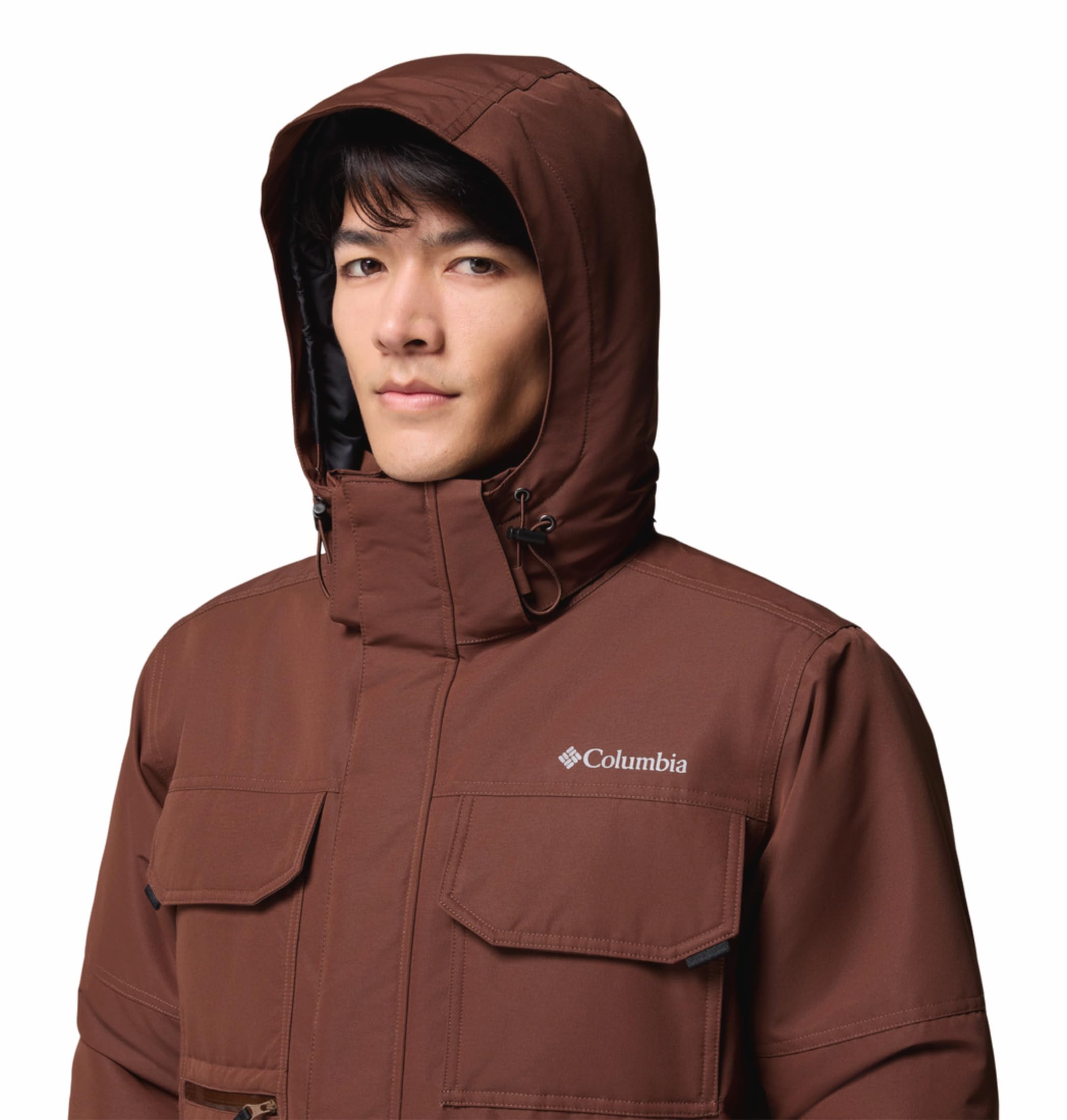 Omni-Tech™ critically seam sealed prevents moisture from seeping into essential areas while using waterproof-breathable fabric, so you stay dry and comfortable in the rain Drawcord-adjustable hood seals out the elements Front closure with flap cover keeps wet out Sewn-in folds create articulated elbows for more room to move comfortably Zippered Hand pockets for small items, drop-in chest pockets, and pocket with hook-and-loop closure to secure valuables Adjustable cuffs for a versatile fit Drawcord-adjustable hem seals out the elements D-Ring for added utility Front zipper closure Uses: Hiking Imported