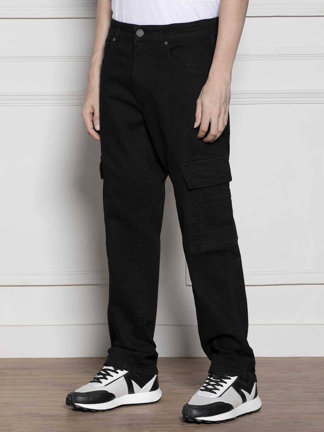 Get ready to step up your style game with these black jeans from Dennis Lingo. Made of 100% cotton, it ensures comfort and durability. These jeans come with a button and zip closure for a tight fit, while the mid-rise waist offers a snug wear. The no-fade fabric and clean look distress make it a perfect pick for casual wear. Machine wash care makes maintenance easy. Team it up with a casual t-shirt and sneakers for a trendy look. So, upgrade your wardrobe with these black relaxed-fit jeans from Dennis Lingo and be the trendsetter everywhere you go!