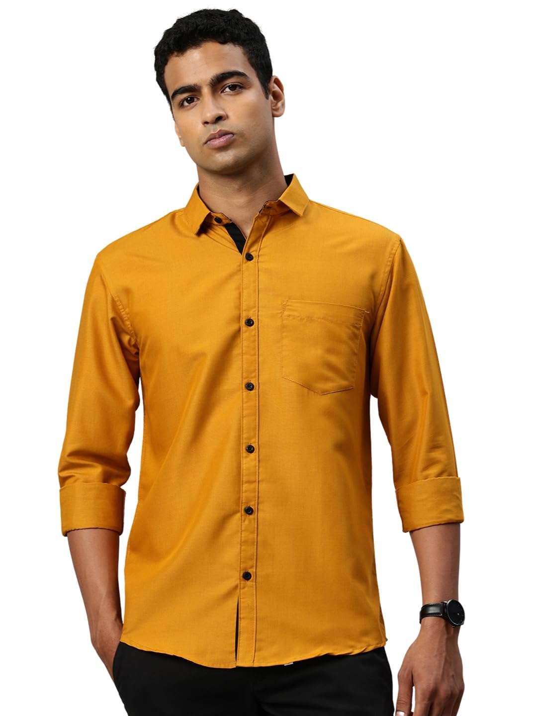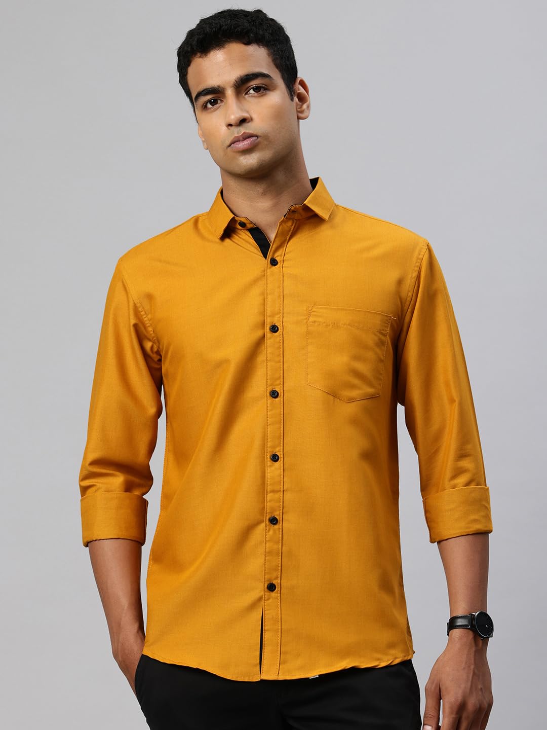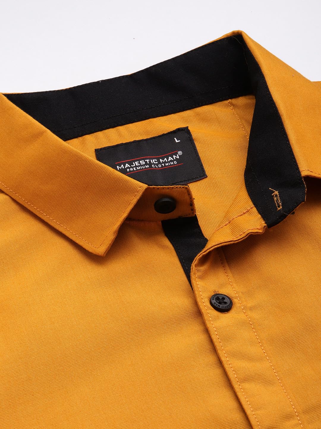 Majestic Man Slim Fit Cotton Blend Formal Shirts for Men (in, Alpha, M, Regular, Mustard Yellow)