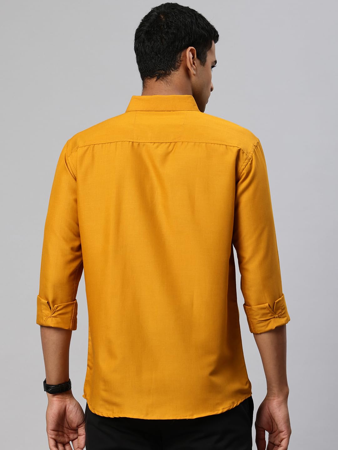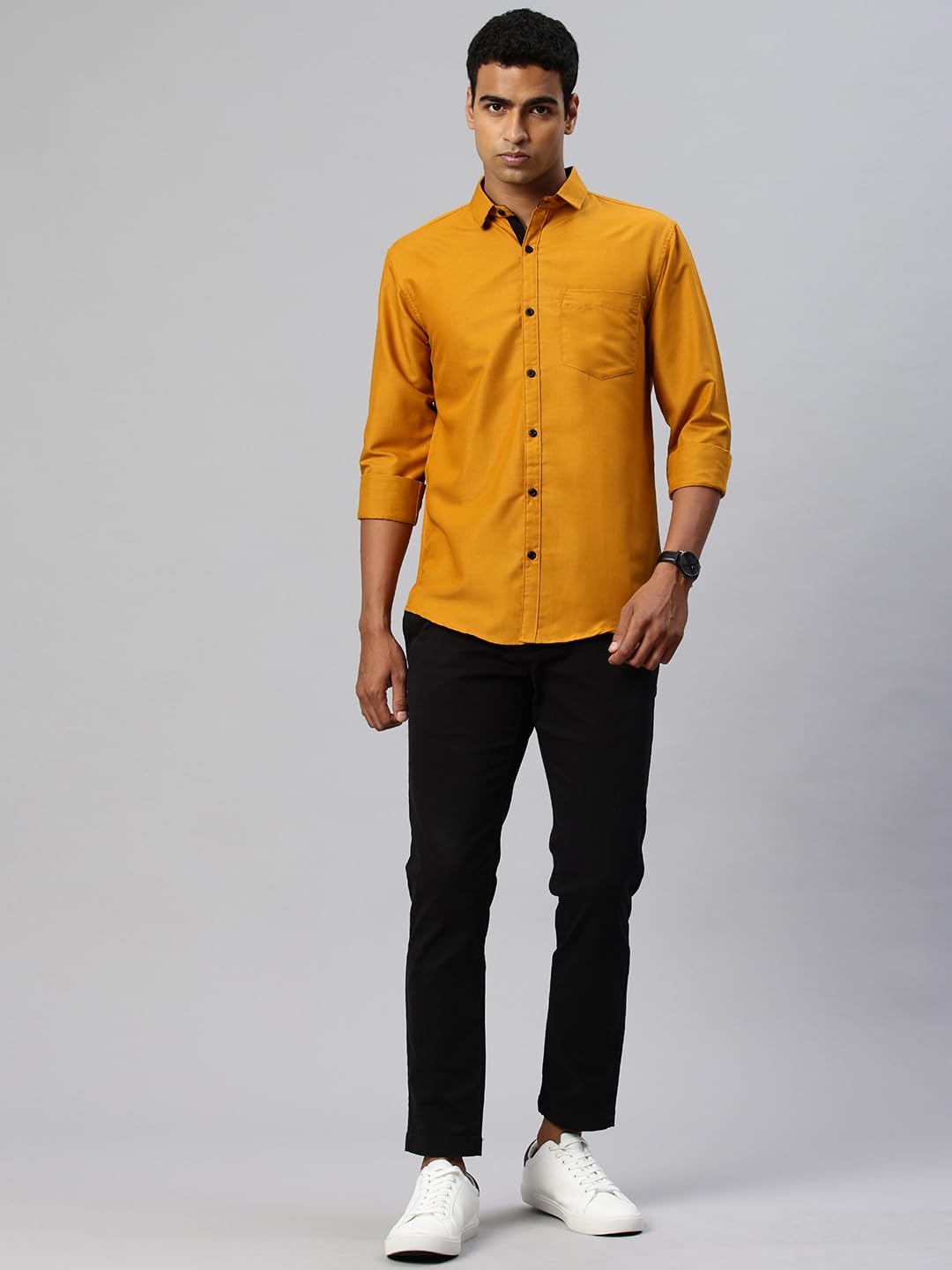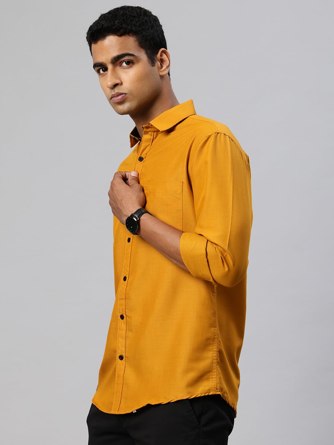Majestic Man Slim Fit Cotton Blend Formal Shirts for Men (in, Alpha, M, Regular, Mustard Yellow)