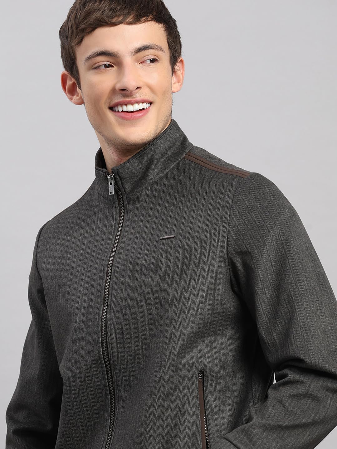 Monte Carlo Mens Regular Fit Striped Pattern Zipper Full Sleeve Winter Jacket | Warm Coat for Men | Stylish Full Sleeve Zipper JacketBrown XL (Pack Of 1)