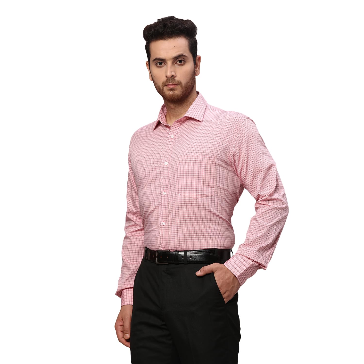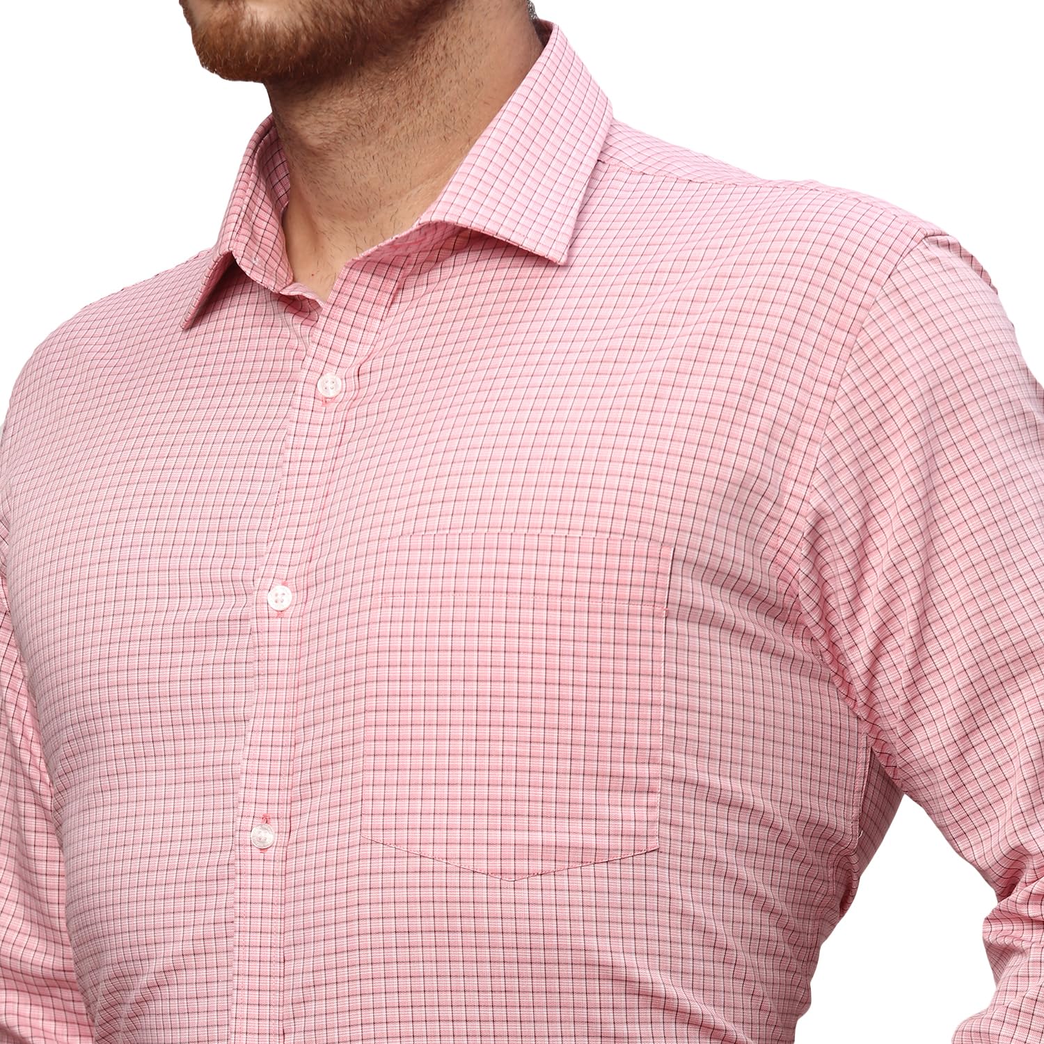 Park Avenue Men’s Cotton Slim Fit Red Formal Checkered Pattern Semi Cutaway Collar Shirt