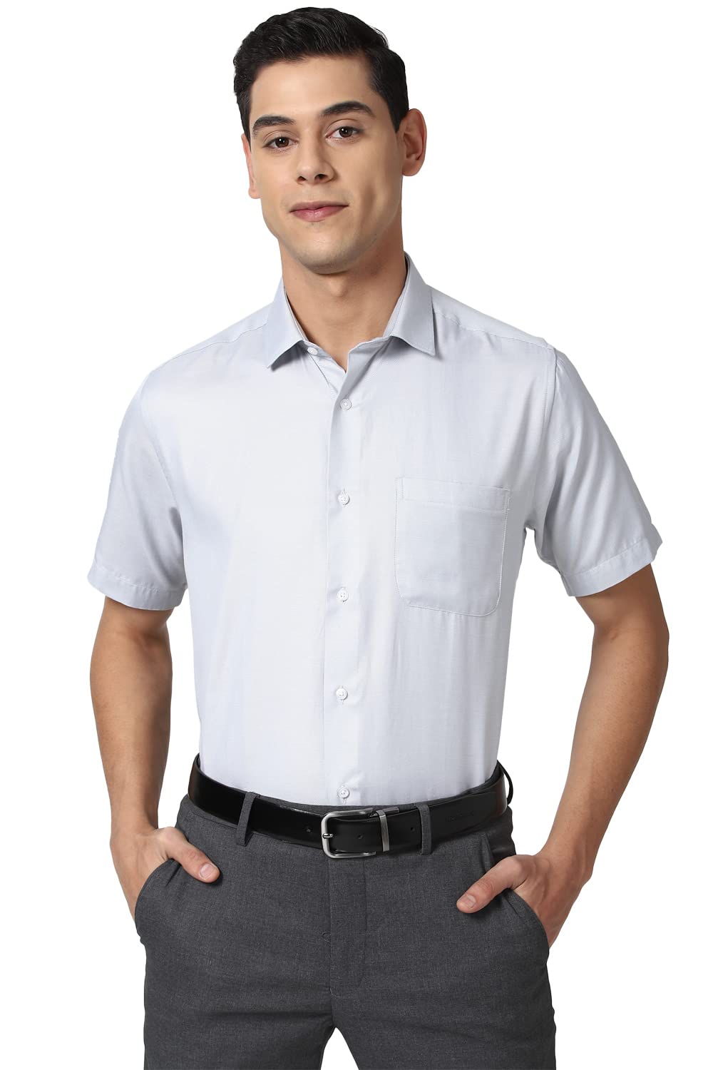 A well fitted shirt always makes you look sharp. Make an impression in this Grey Textured Regular Fit formal shirt from Peter England by Peter England.