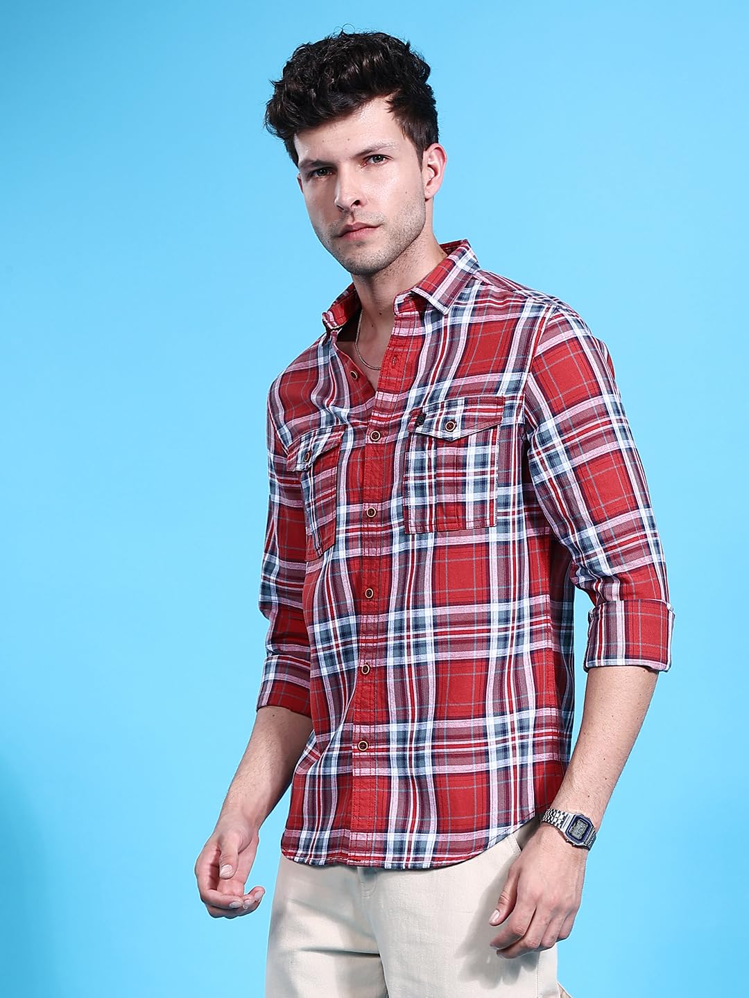 - Features: Regular Fit Checkered Street Wear Over Shirt for Men with a Cutaway Collar, Full Sleeves, Regular Length. Designed with a Straight Hemline, 2 Flap Pocket, and a Button closure. Whether you’re dressing for a casual day out, a formal event, a business meeting, a party, birthday, wedding, anniversary, or any special celebration, our collection promises the perfect blend of comfort and elegance for every occasion.