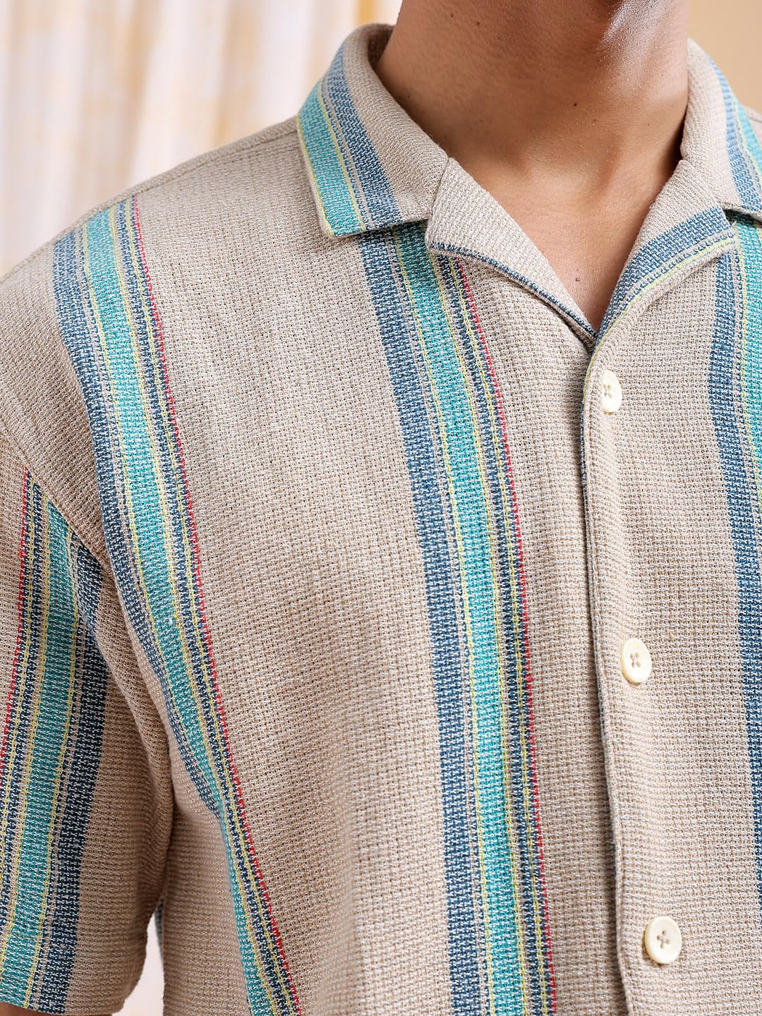 - Features: Relaxed Fit Striped Resort Wear Shirt for Men with a Cuban Collar, Half Sleeves, Short Length. Designed with a Straight Hemline, Without Pocket, and a Button closure. Whether you’re dressing for a casual day out, a formal event, a business meeting, a party, birthday, wedding, anniversary, or any special celebration, our collection promises the perfect blend of comfort and elegance for every occasion.
