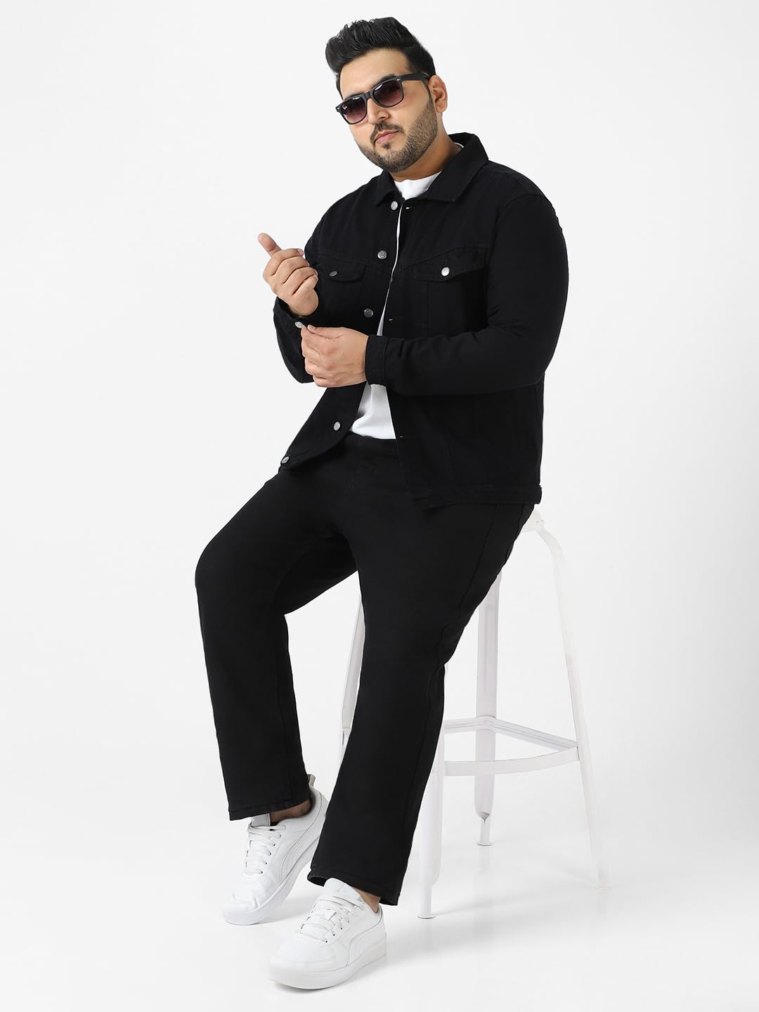 Urbano Plus Men’s Black Regular Fit Washed Full Sleeve Denim Jacket (plusjaktp-denim-black-4xl)