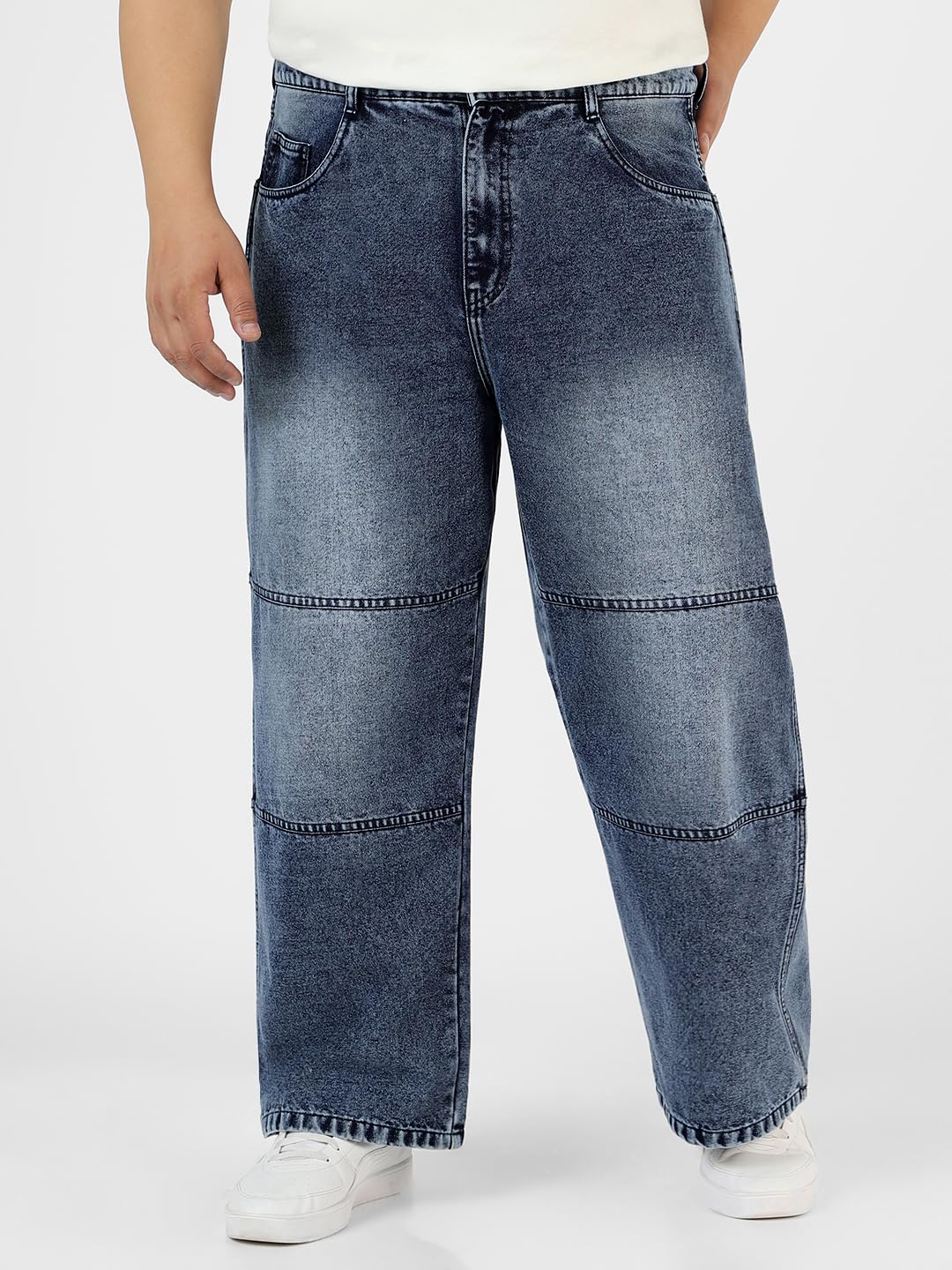 Urbano Plus Men’s Blue Loose Baggy Fit Cut and Sew Panelled Jeans Non-Stretchable (plusjeanlosblcnsp-mblue-36)