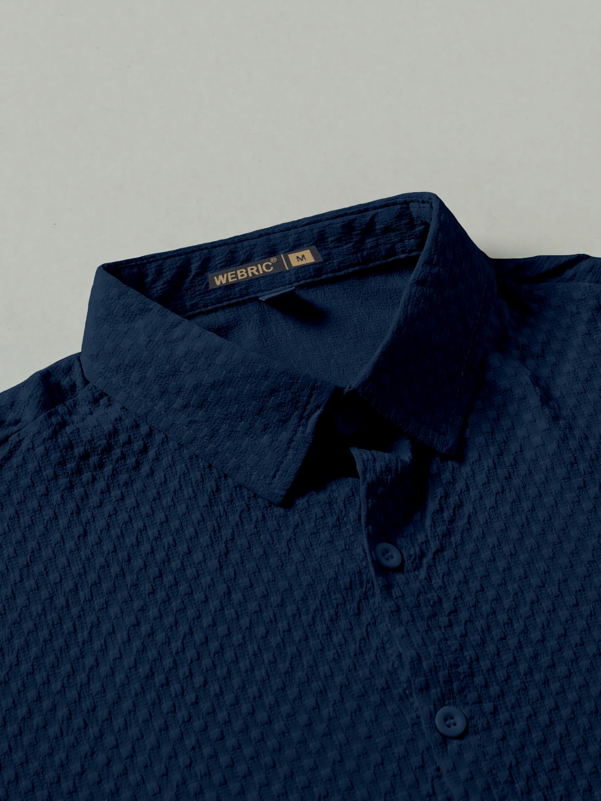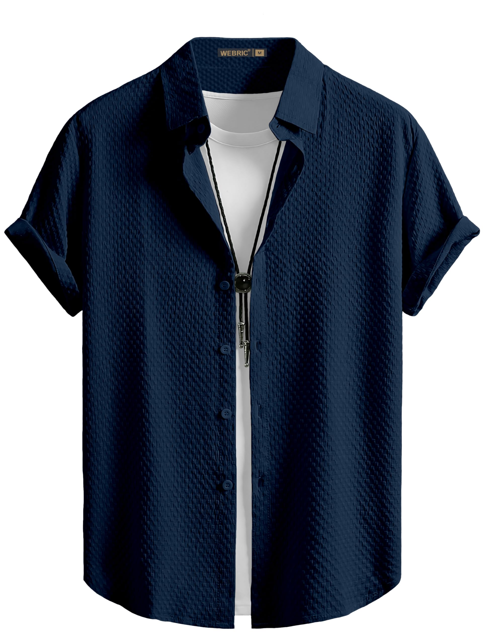 WEBRIC Men’s Regular Fit Solid Soft Touch Cotton Blend Casual Shirt Design with Spread Collar & Half Sleeves Navy Blue